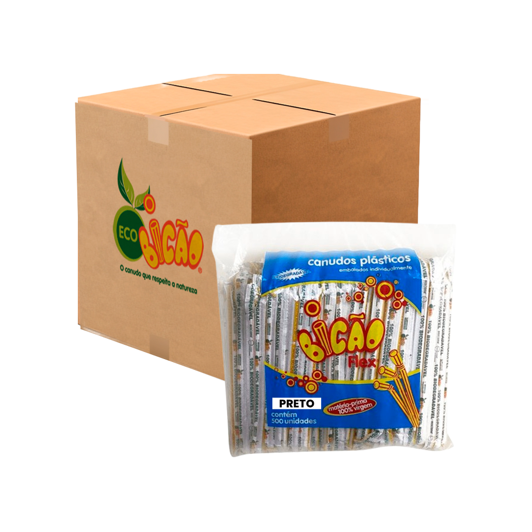 Canudo Biodegradável 190x6mm Flex 6 X 500 Bicao - Preto