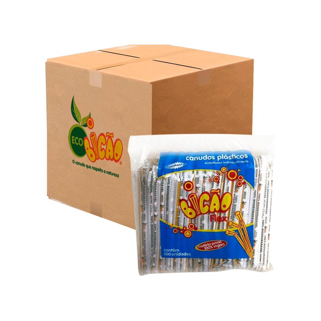 Canudo Biodegradável 190x6mm Flex 6 X 500 Bicao - Vermelho e Branco