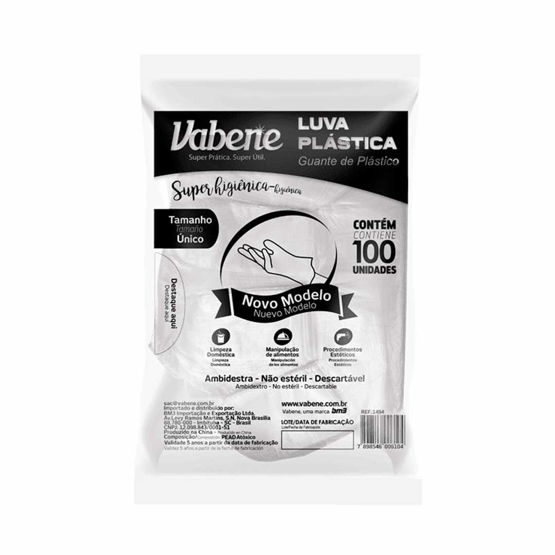 Luva Plástica Descartável Vabene C/100